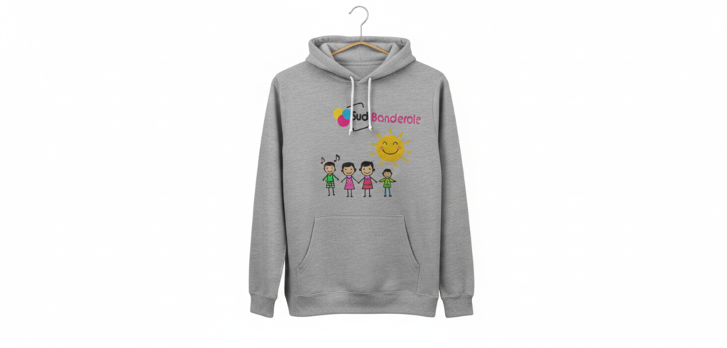 Chaque vêtement devient alors un souvenir tangible, que tu portes fièrement et que tu partages avec ton entourage. Chez Sudbanderole, nous t’accompagnons pour créer des vêtements personnalisés qui racontent ton histoire, celle que tu vis au quotidien.