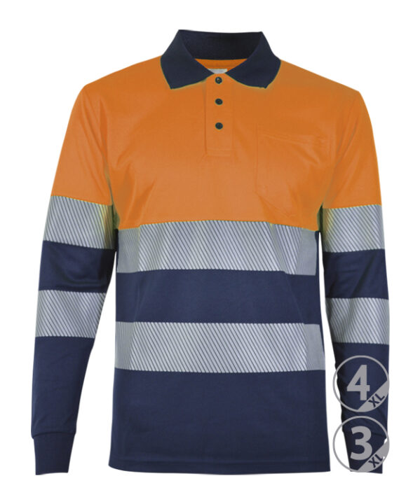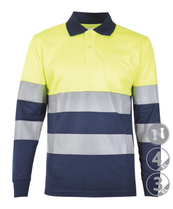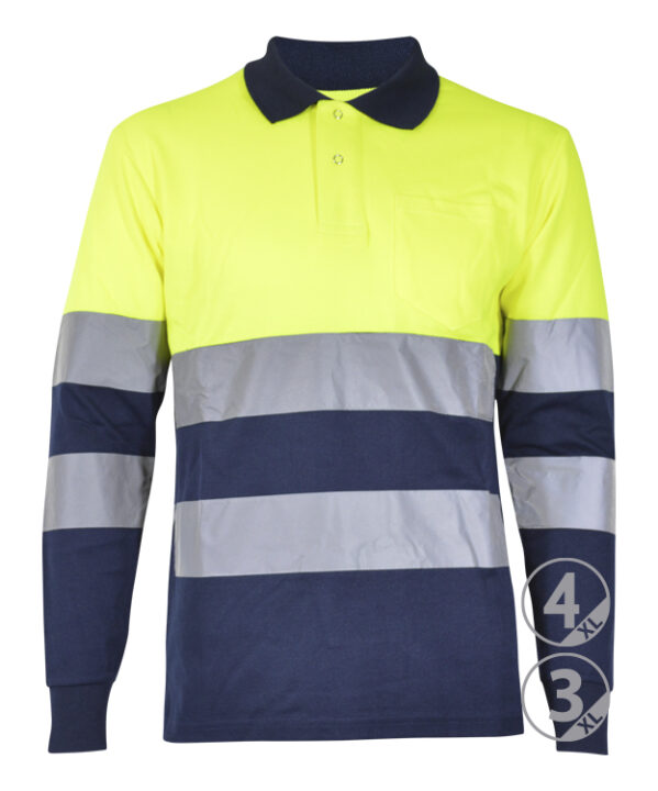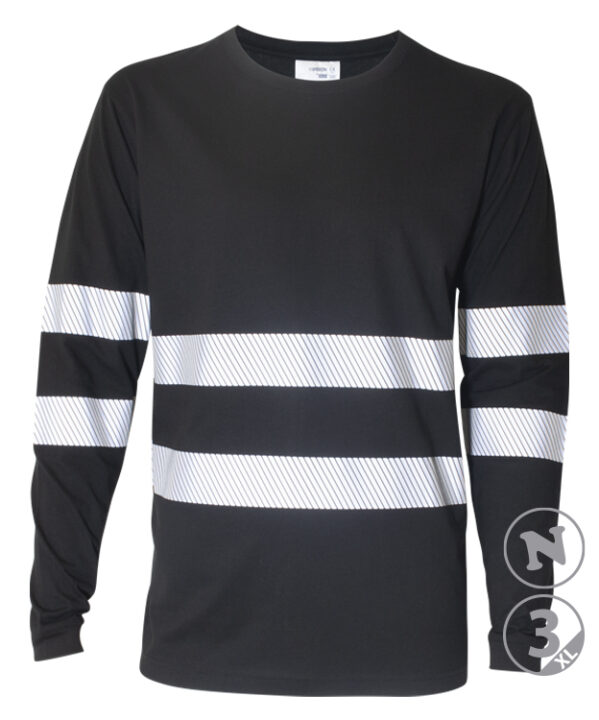 2 bandes réfléchissantes cousues sur le torse et les manches de 5 cm