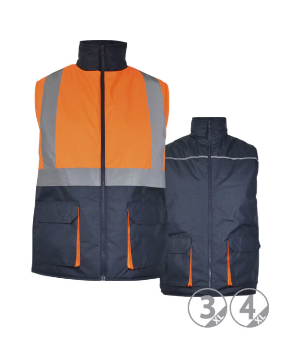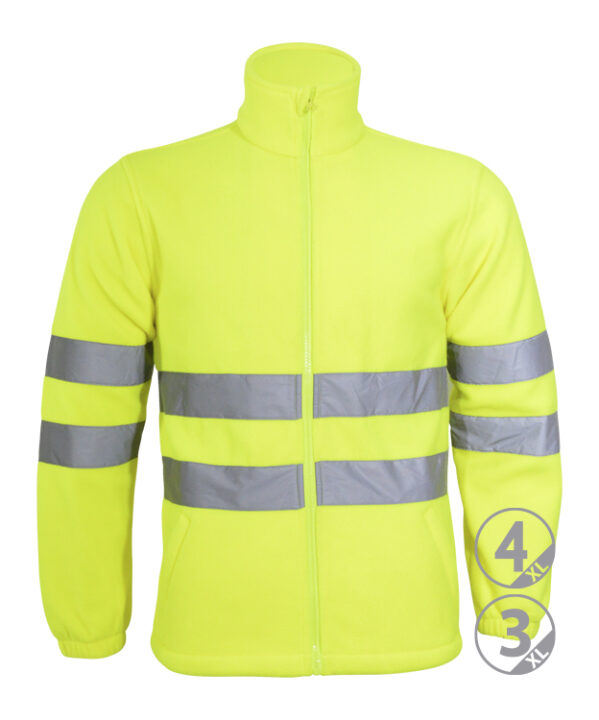 Polaire 100% polyester 280 gr Traitement anti-boulochage sur la face externe Ourlet avec régulateurs pour ajuster la taille Manchette élastique Fermeture éclair complète Poches latérales zippées Bandes réfléchissantes:
