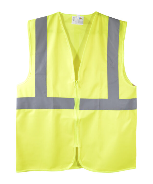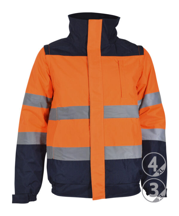 100% polyester Comprend une poche poitrine et deux poches latérales avec fermeture éclair contrastée