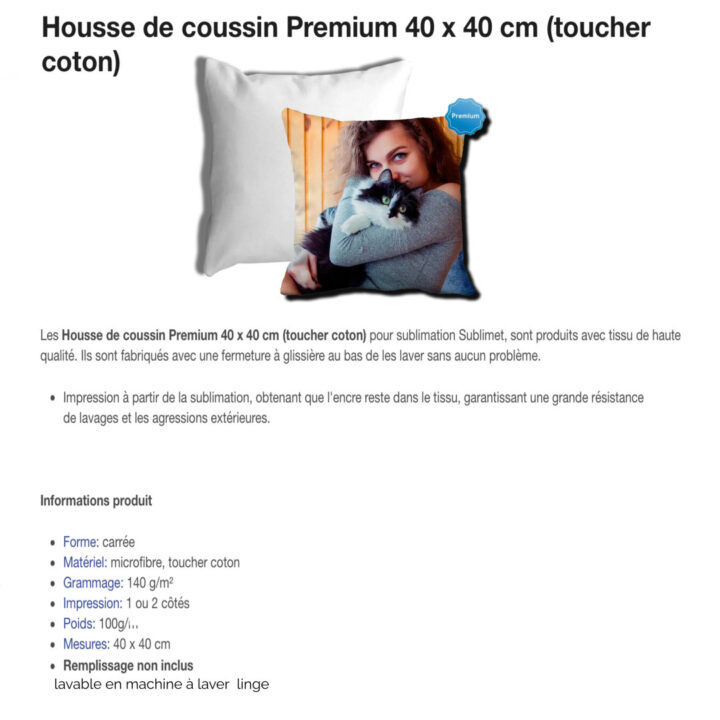 Impression à partir de la sublimation, obtenant que l’encre reste dans le tissu, garantissant une grande résistance de lavages et les agressions extérieures Forme: carrée Matériel: microfibre, toucher coton Grammage: 160 g/m²Impression: 1 côtés