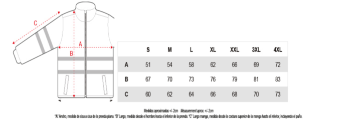 Polaire 100% polyester 280 gr Traitement anti-boulochage sur la face externe Ourlet avec régulateurs pour ajuster la taille Manchette élastique Fermeture éclair complète Poches latérales zippées Bandes réfléchissantes: